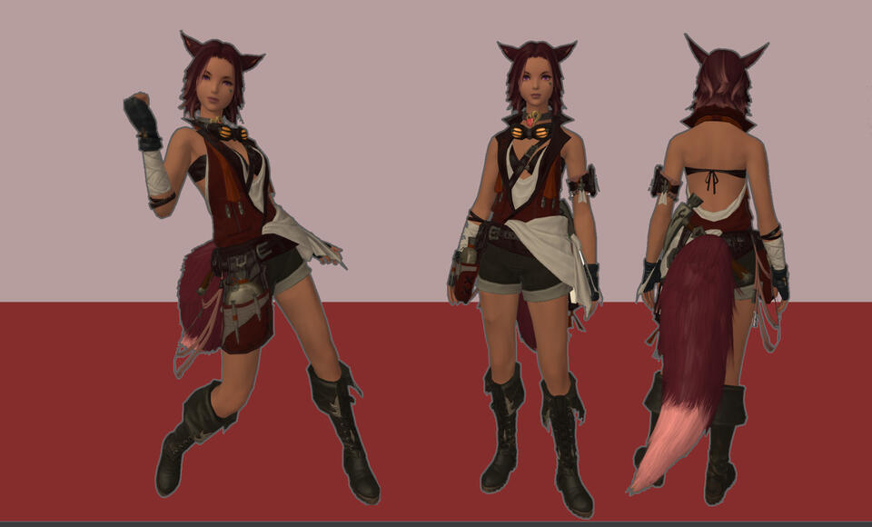 Brytes backstory is riddled with tragedy, but it has grown her into the woman she is today.Her mother was an avid researcher in the supernatural, using the vixens birth to discover and attempt to learn more about auspiciousness. Because of this Bryte was born somewhat of a hybrid; Resembling a miqo'te, but having more fox-like features thanks to her 'fathers' genes.Brytes tail is massive. Fluffy, and heavy; The appendage is a sight and sticks out like a sore thumb. One could mistake it for a foxes, as there is no shortage of floof and she does all she can to maintain its shine and splendor. Her ears rival this ideal as well; Taller, fluffier, and more front facing than that of a miqo'tes; They look more vulpine in their design.